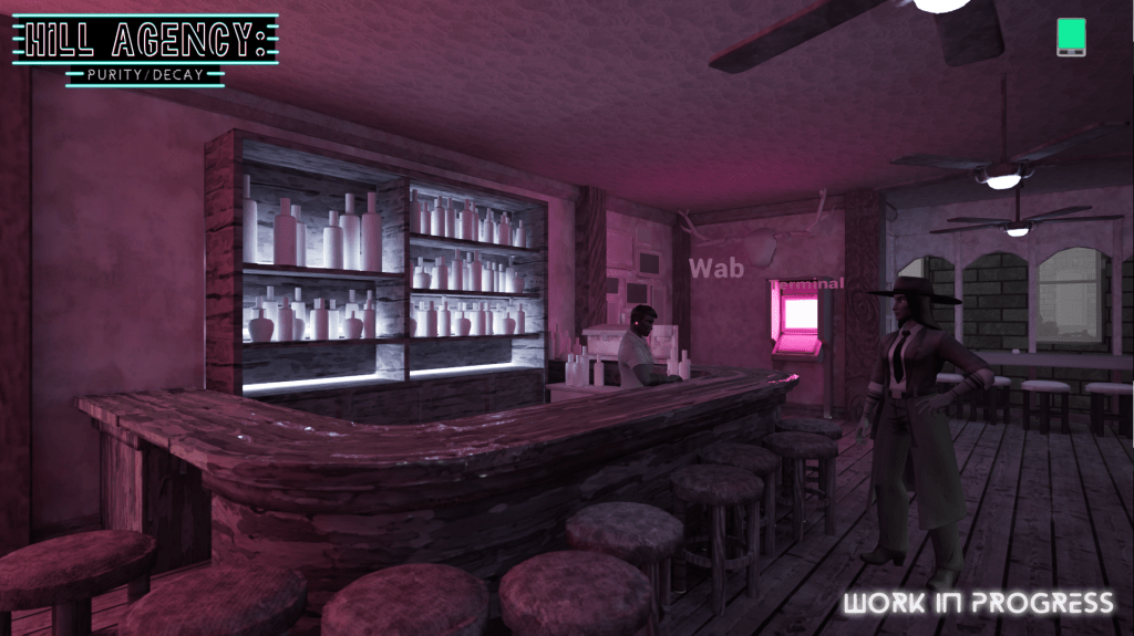 Our newest game is Hill Agency: PURITY decay. A detective mystery game where you play as a tough as nails P.I. solving everything from petty crimes to global conspiracies all while exploring the various different worlds that make up North America of the future.